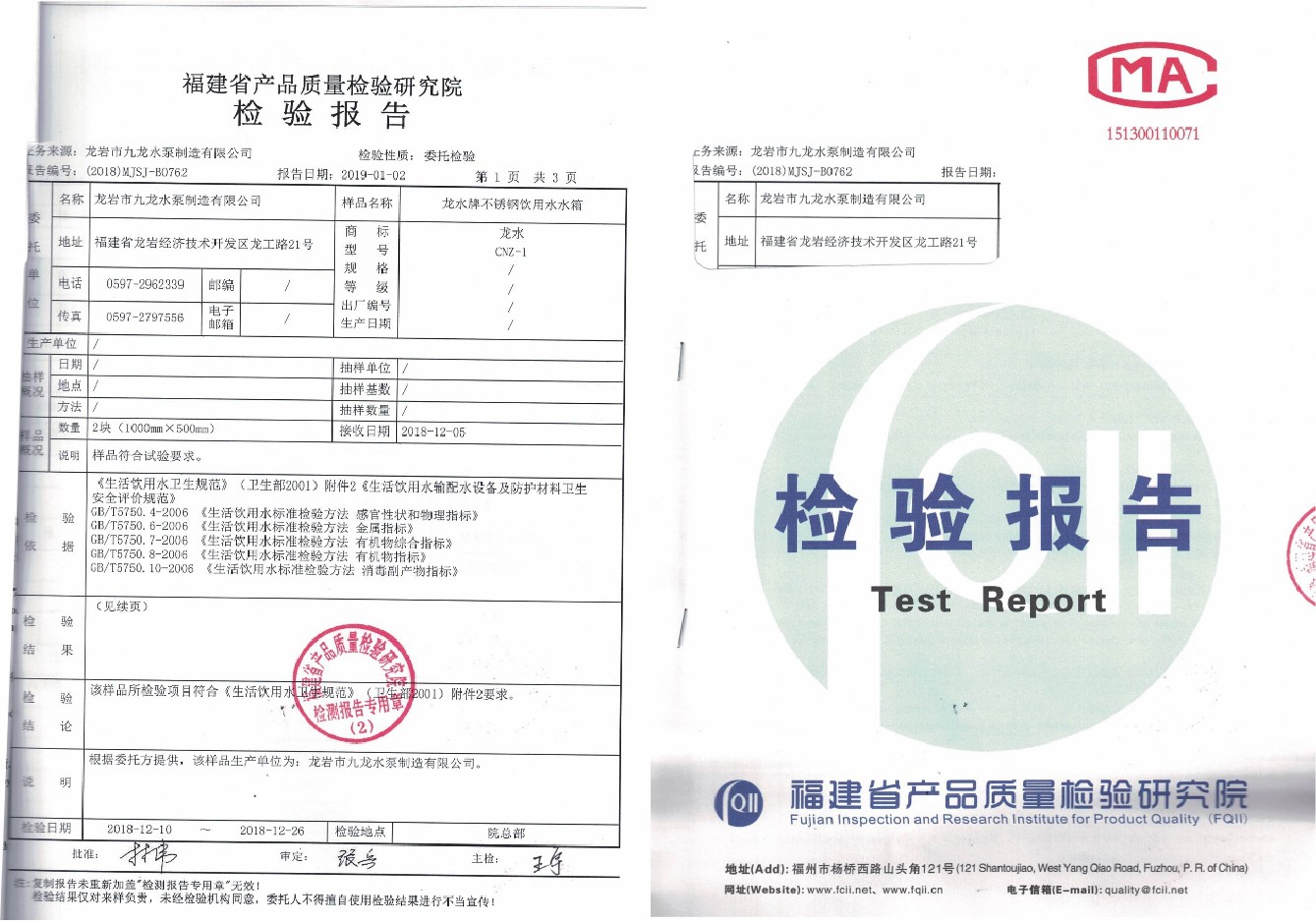 不銹鋼飲用水水箱衛(wèi)生許可批件