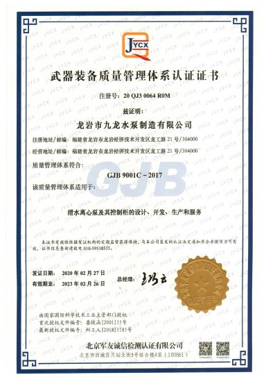 武器裝備質(zhì)量管理體系認(rèn)證證書